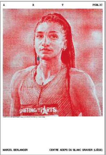 L’artiste Marcel Berlanger investit le Centre sportif ADEPS du Blanc Gravier à Liège avec une double intervention : une frise en pixels géants court sur certaines façades du centre d’hébergement, tandis que les chambres accueillent des portraits peints de sportives et sportifs belges médaillé∙e∙s.